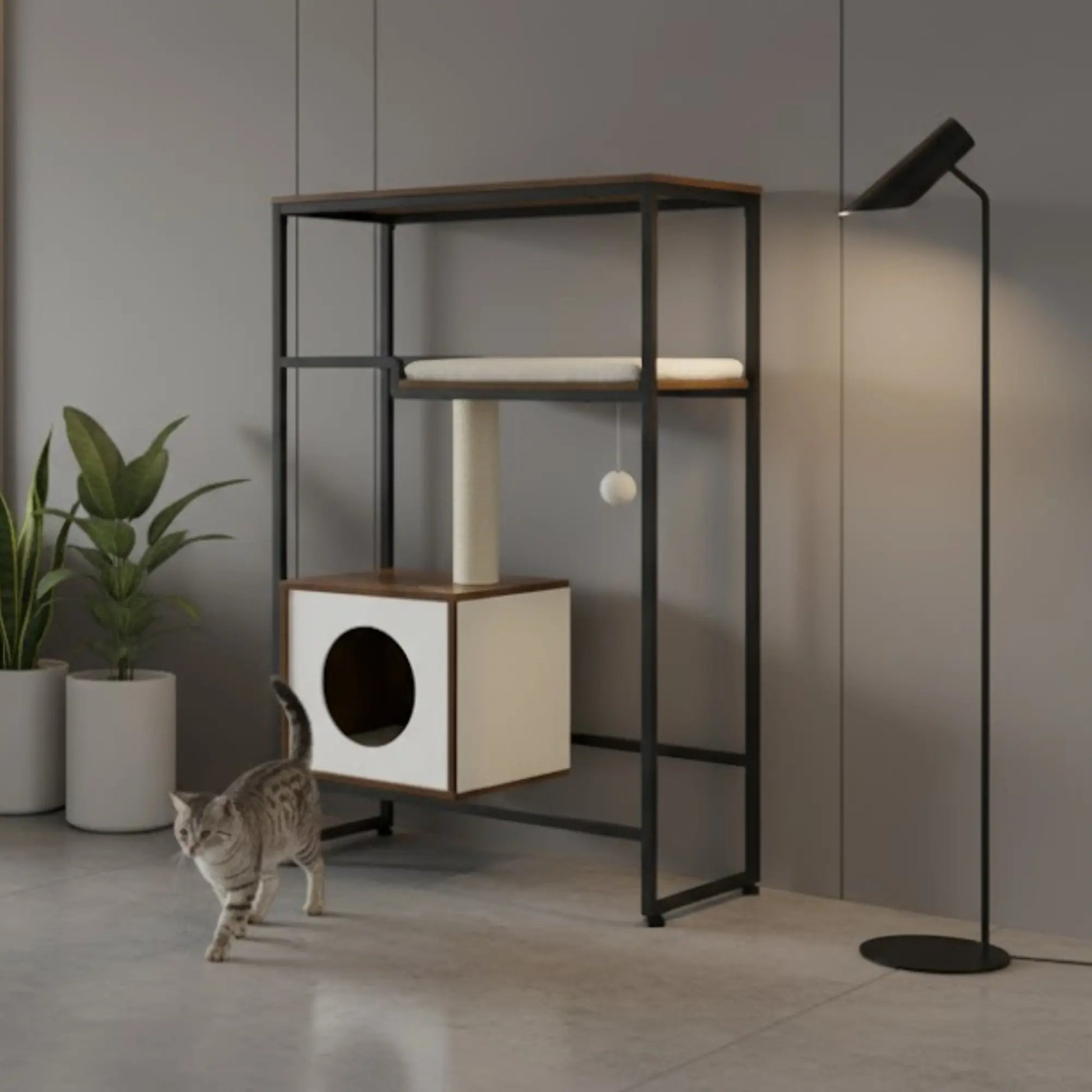 Certains clients ajoutent des litières autonettoyantes compatibles. Nos meubles ont une ouverture de câbles sur certains modèles.
